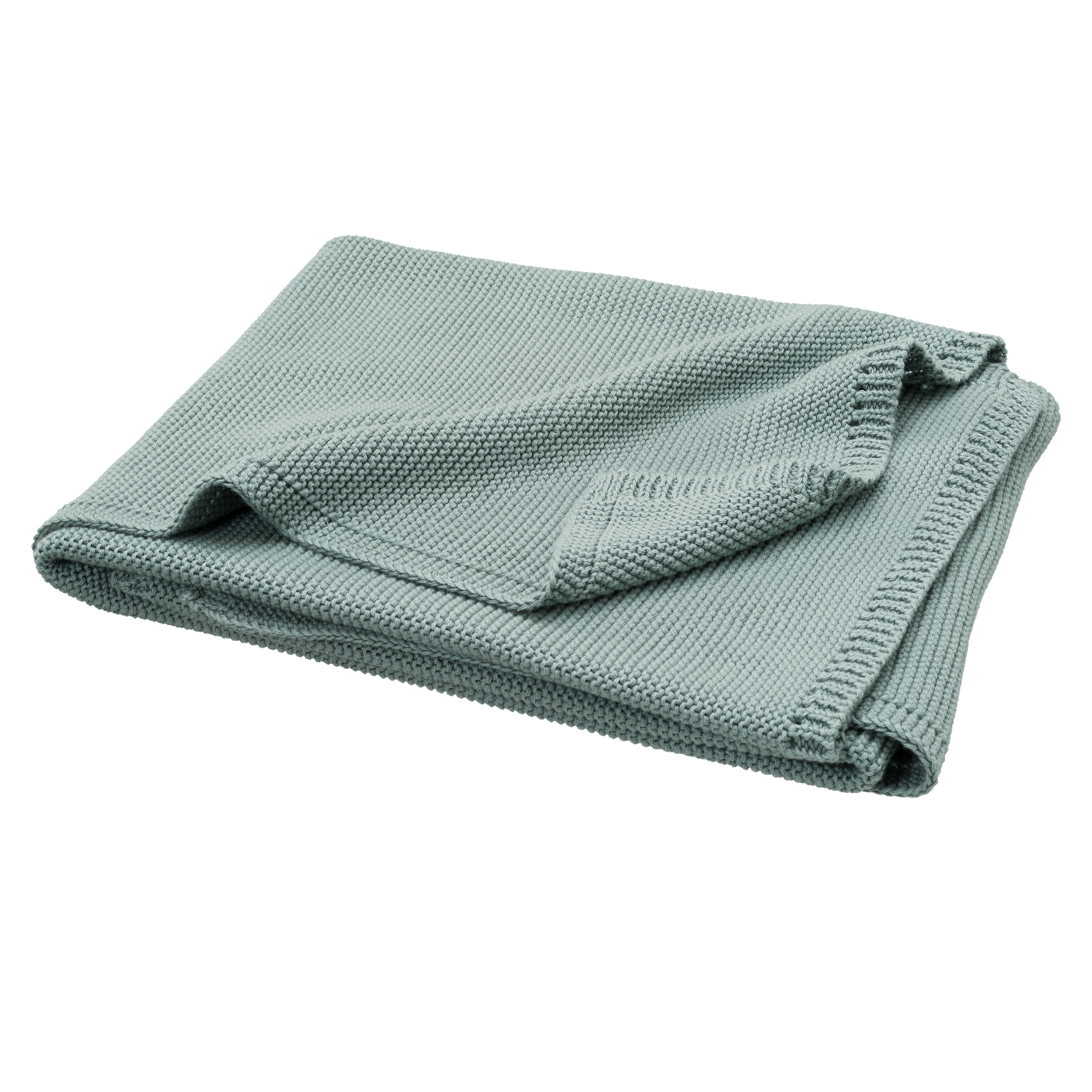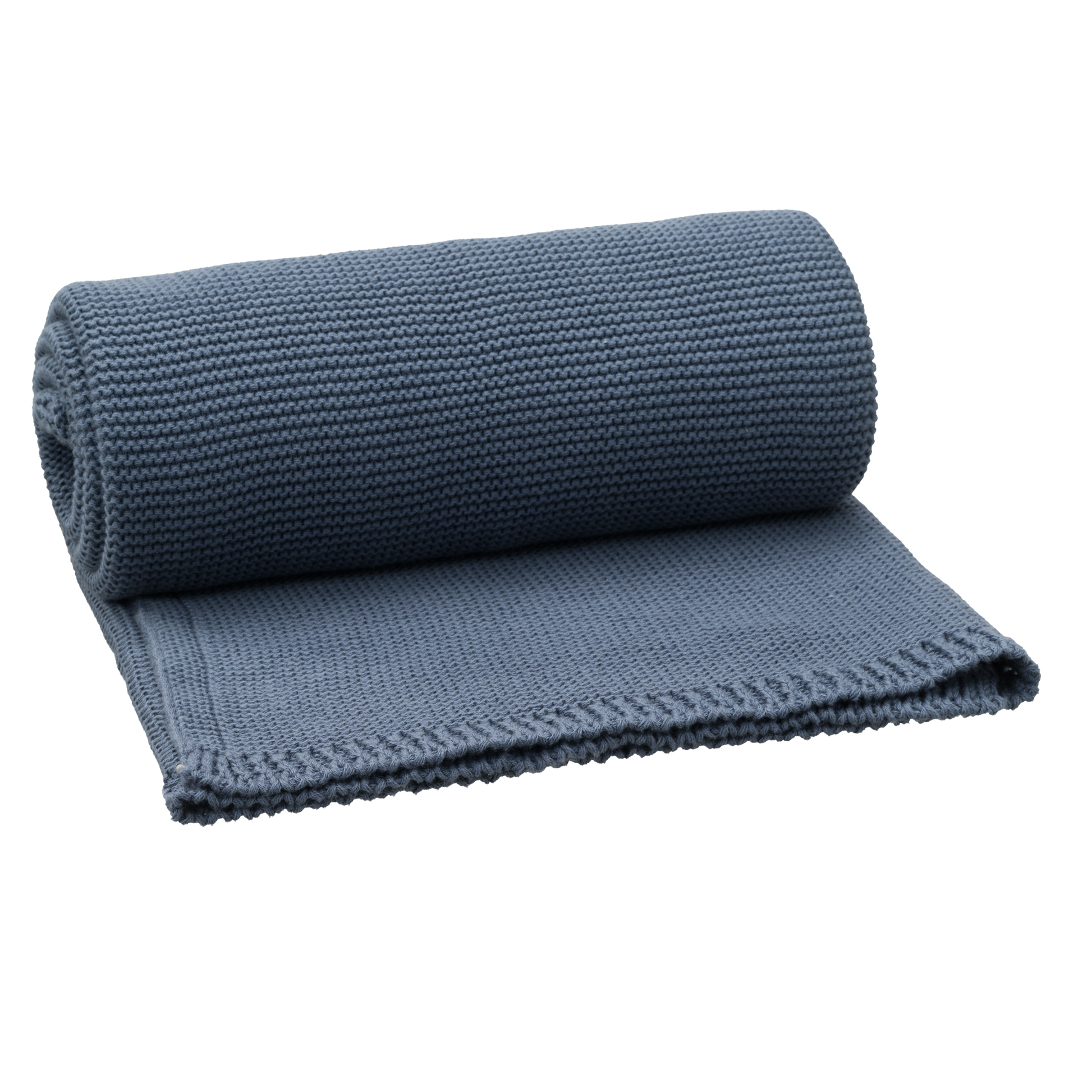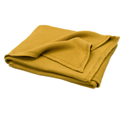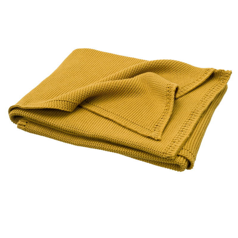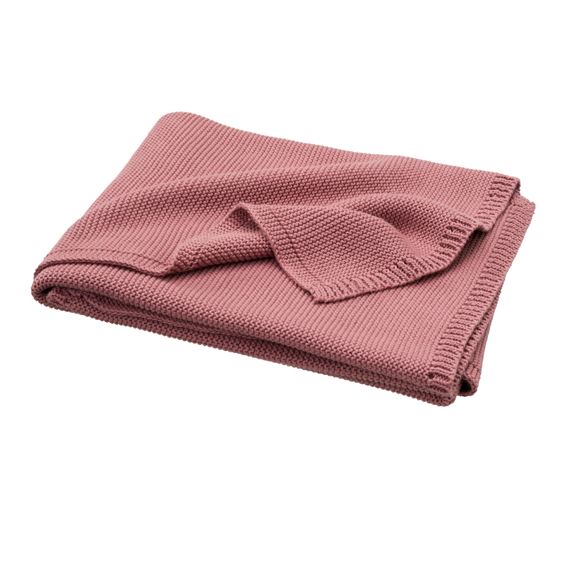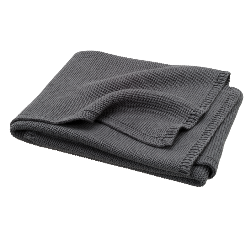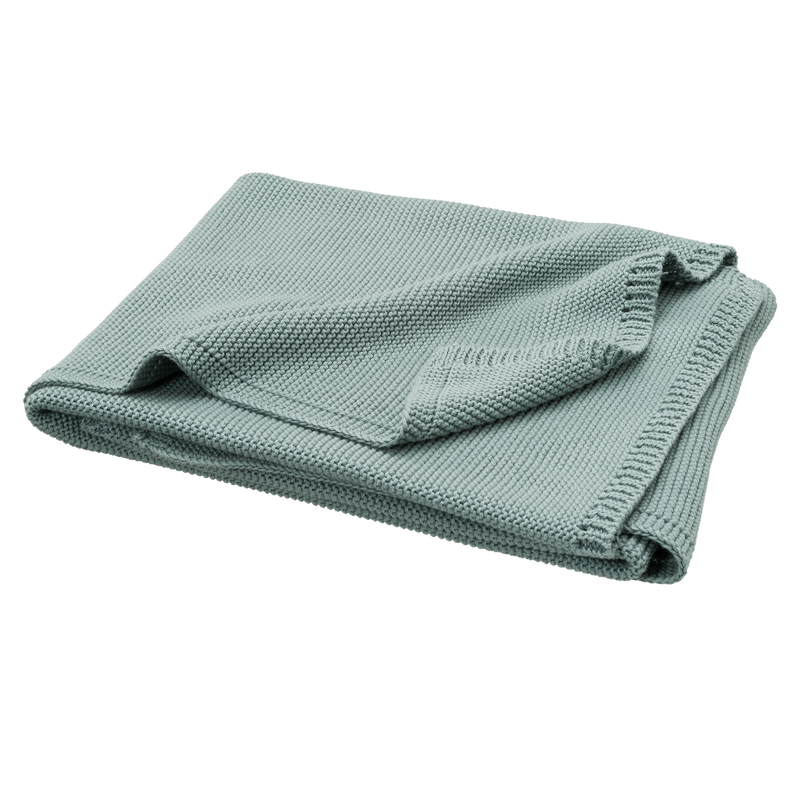 Couverture de 80 x 100cm en coton tricoté 100% organique. La maille mousse rend la couverture confortable et douce.
