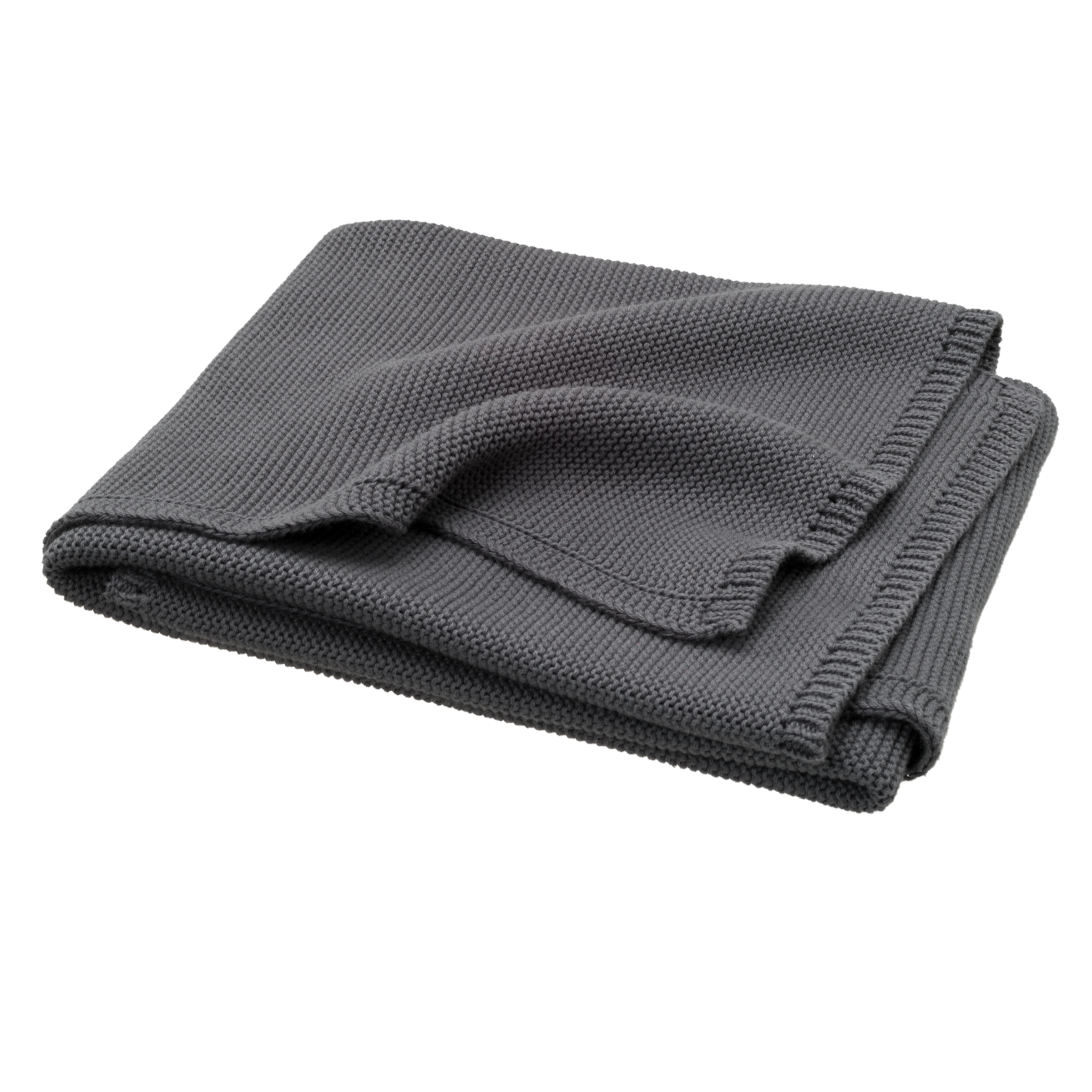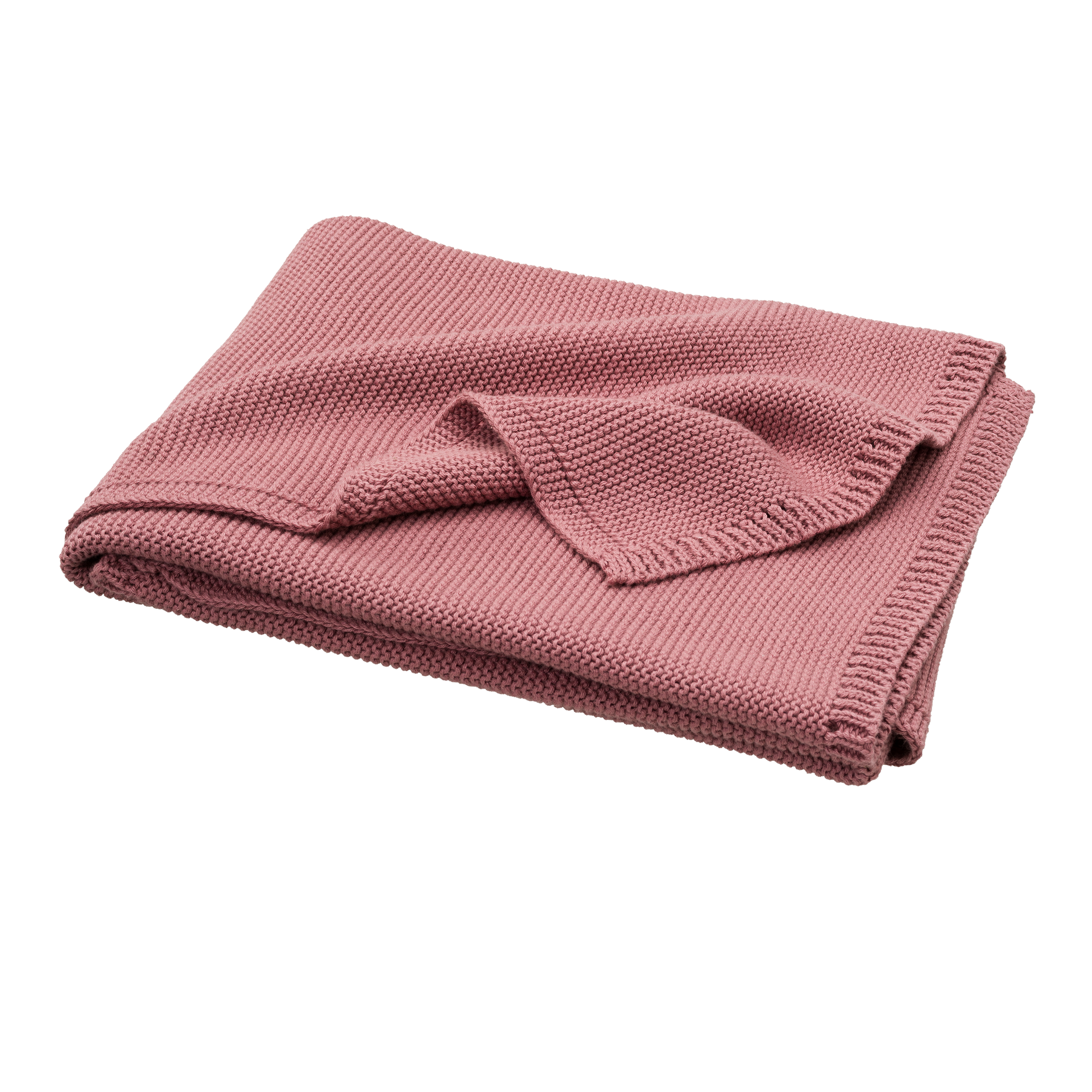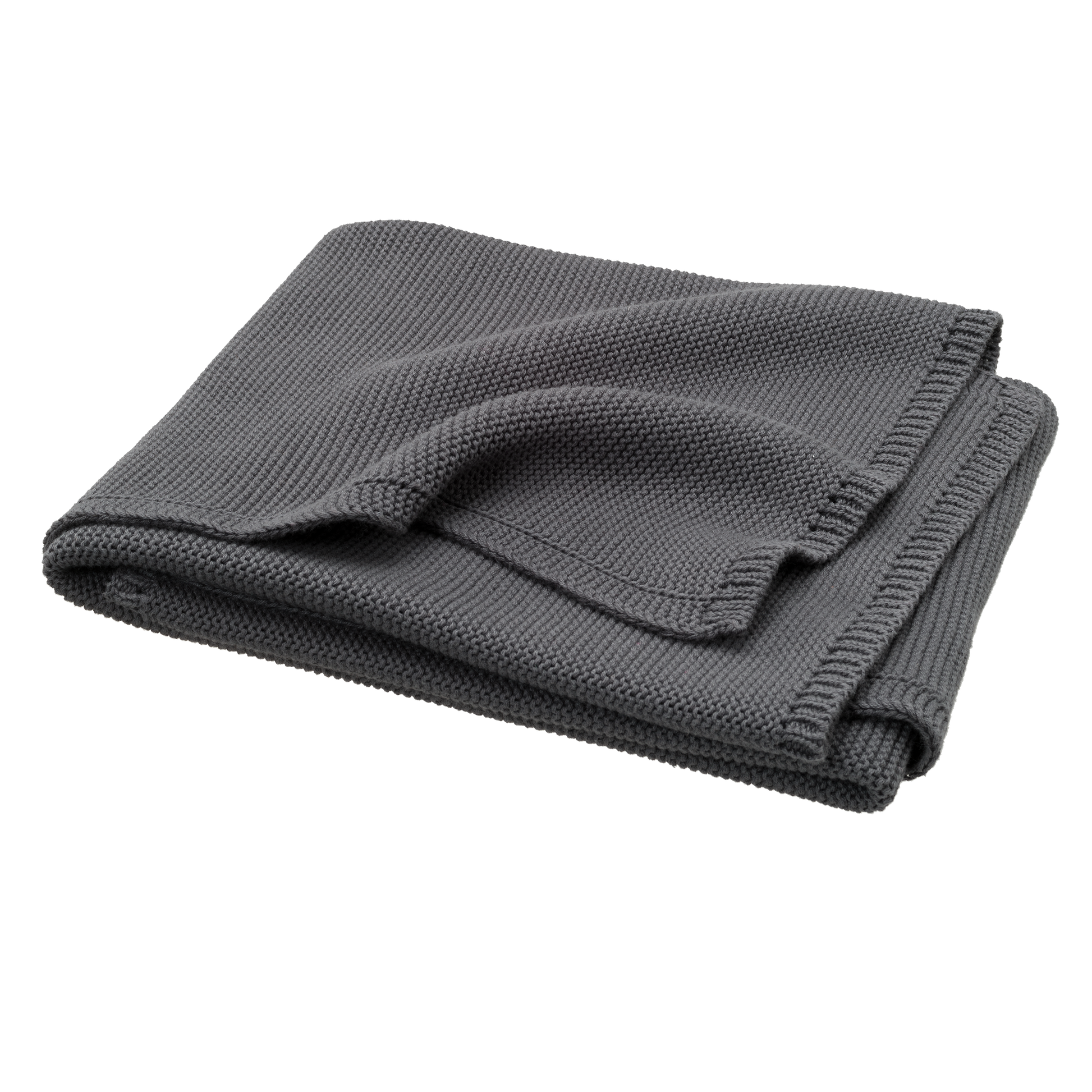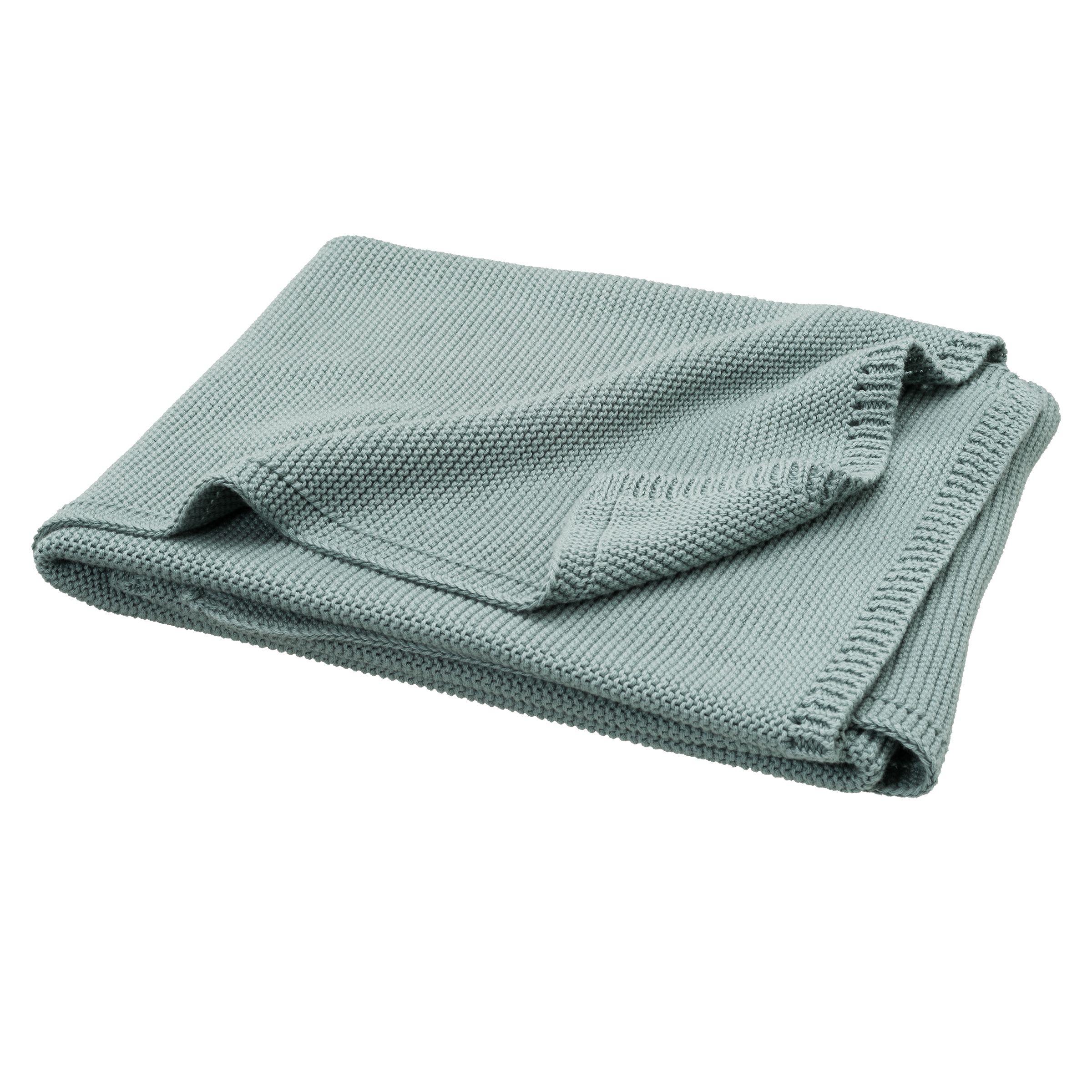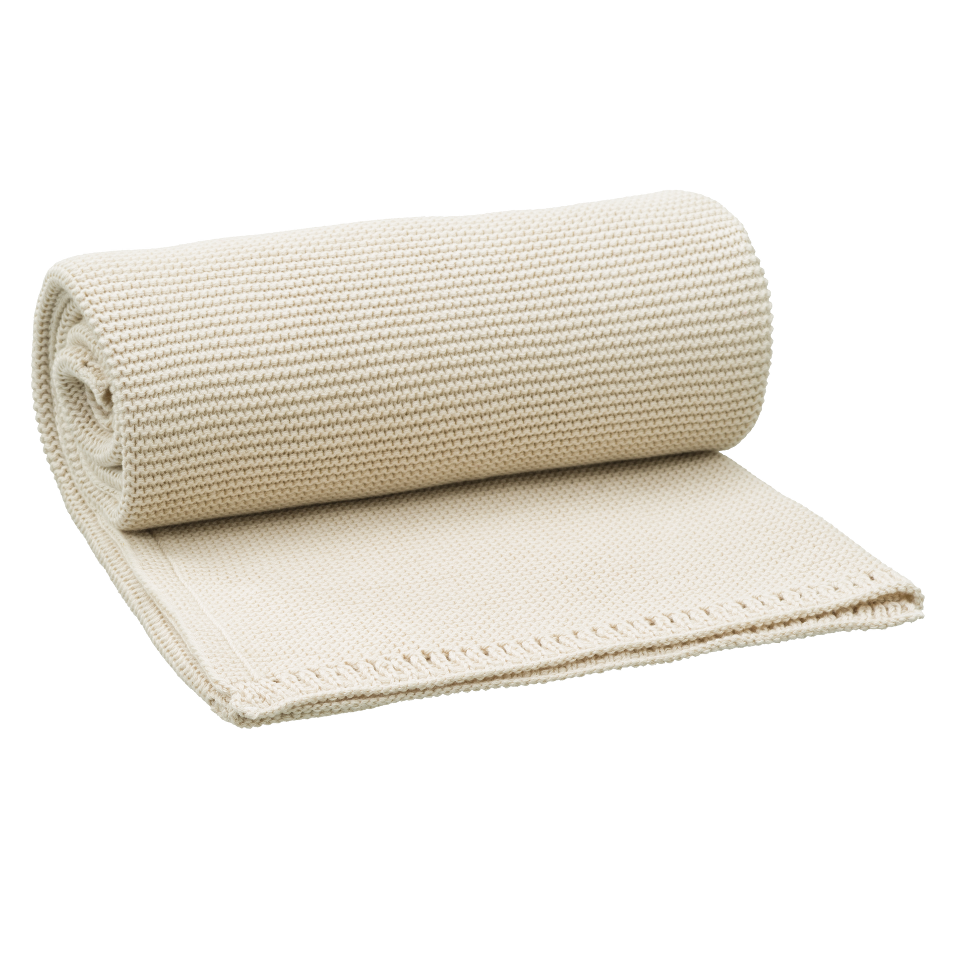 Couverture de 80 x 100cm en coton tricoté 100% organique. La maille mousse rend la couverture confortable et douce.