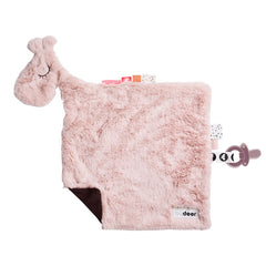 Le doudou attache-tutu Lalee de Done By Deer, super doux et facile à attraper pour les tous petits. . Avec des étiquettes amusantes pour les petits doigts à explorer et un clip de sucette Velcro.