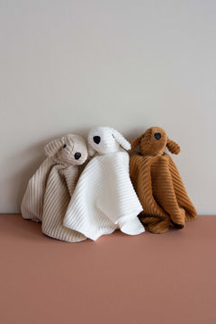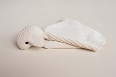 Une jolie peluche douce en velours côtelé. Le tissu est doux pour votre bébé. il est en coton certifié Oeko-tex. Molly Huggy a une large côte sur le dessus et une surpiqure de la même couleur de l'autre côté.