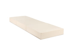 Grâce à sa mousse de 12 cm d’épaisseur (densité 20), on y dort confortablement. Le matelas est recouvert d’une housse 100% en sergé de coton déhoussable.