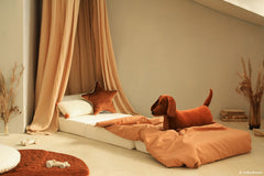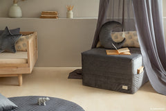 Un produit 3 en 1 : fini le manque de place pour accueillir les copains copines, ce lit d’appoint pliable, est à la fois un pouf ou une table de jeu pour les plus petits. Très chic, sa housse extra-douce en éco-velours issus de fibres 100% recyclées, dispose de deux poches latérales pour y ranger livres et jouets.