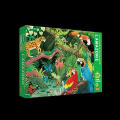 Lis le livre pour découvrir et apprendre un tas de choses sur l’Amazonie, puis fais le puzzle qui l'accompagne, très détaillé et irisé comme sa boite !