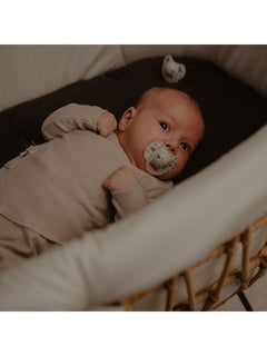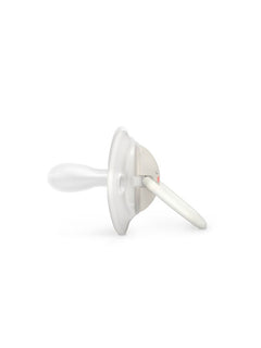 Lot de 2 sucettes avec embout réversible en silicone finition sablé, adaptée pour les nouveaux-nés jusqu'à 6 mois. La boucle est phosphorescente dans le noir.