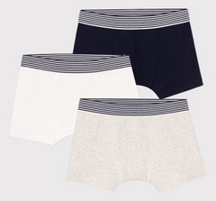 Lot de 3 boxers unis en coton petit garçon en côte, la matière emblématique de Petit Bateau.