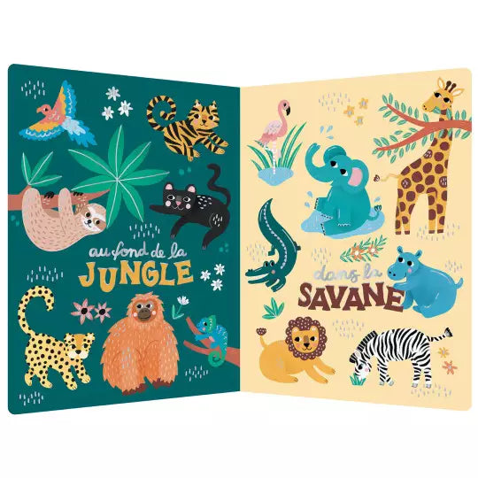 Pars à la découverte des animaux du monde entier avec de grandes et belles illustrations pleines de douceur ! Retrouve un imagier d'animaux de 10 milieux naturels sur de grandes pages joliment illustrées, avec des touches scintillantes.