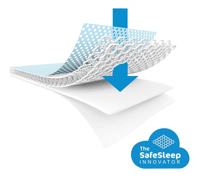 Le coussin SafeSleep est basé sur une technologie 3D d'Aerosleep; il se compose de 3 couches avec chacune une fonction importante pour un sommeil sécurisé. La structure 3D garantit une respiration libre, tandis que la couche d'air régule la chaleur autour de la tête, en sécurisant le tout. Pratique: le coussin est lavable en machine à 60° C, une température à laquelle les allergènes et les bactéries trépassent.