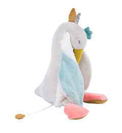 Cette jolie peluche musicale à l'effigie d'une oie, de la collection Le voyage d'Olga par Moulin Roty, bercera tendrement bébé avec sa douce musique comme sortie d'un rêve. Sa fourrure toute douce est aussi parfaite pour les câlins pendant la nuit. La boîte à musique peut s'enlever pour laver facilement la peluche.