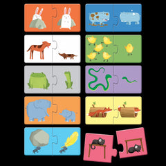 Apprends les contraires avec la nouvelle édition de la série Puzzle 2 ! Lis le livre, puis apprends les contraires en assemblant les 10 mini-puzzles de deux pièces