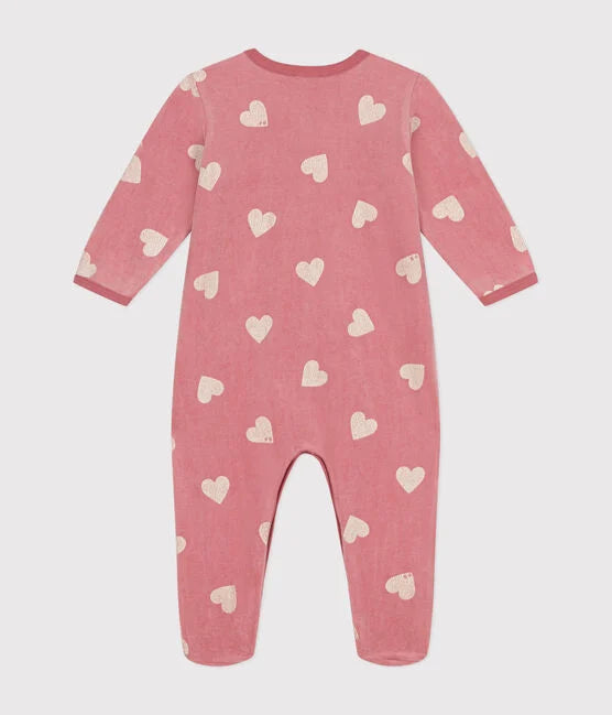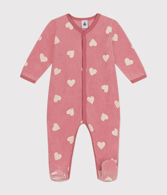 Pyjama bébé rayé en velours imprimé motif coeurs