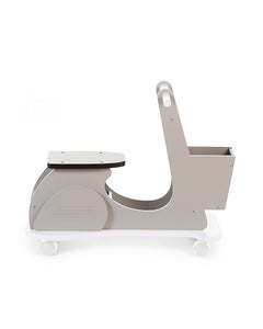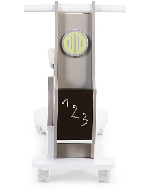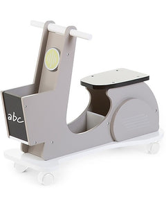 Scooter sur roues avec ragnemtns et tableau noir pour dessiner. Gris.