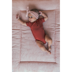 Le tapis de parc Timboo se compose du tissu bambou doux à l’extérieur avec une couche à l’intérieur pour encore plus de confort. Cet article est réversible et peut être fixé au lit avec des rubans courts.