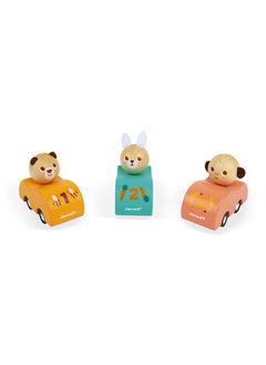 Voitures à friction en bois de Janod.